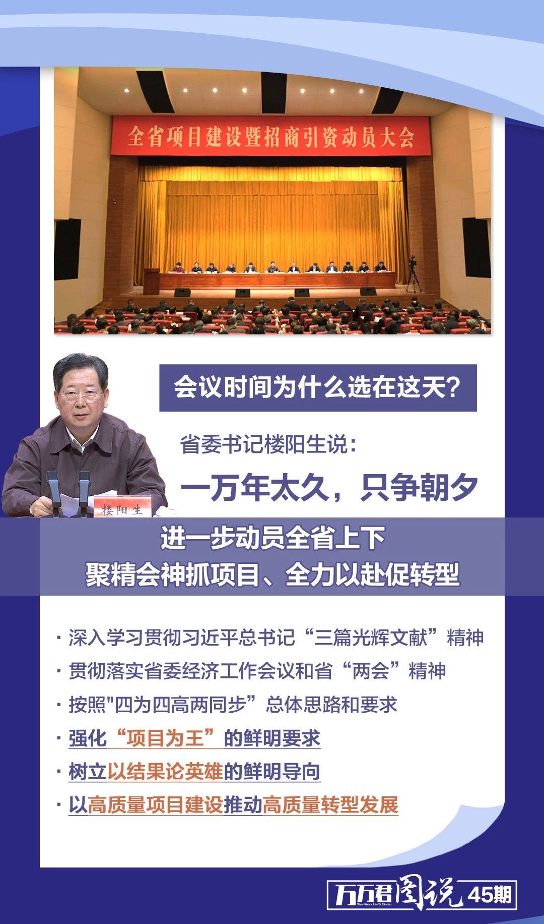全省“兩會”剛剛勝利閉幕當天下午省委、省政府在第一時間召開了全省項目建設暨招商引資動員大會省委書記、省人大常委會主任 樓陽生出席并作重要講話