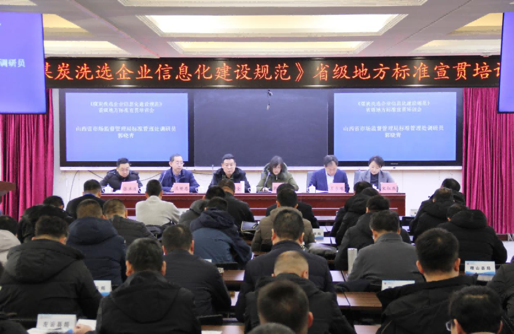 12月22日上午,《煤炭洗選企業(yè)信息化建設(shè)規(guī)范》省級地方標(biāo)準(zhǔn)宣貫培訓(xùn)會圓滿召開,省能源局二級巡視員房世全、省能源局信息與監(jiān)測處處長蘭世忠、省市場監(jiān)督管理局標(biāo)準(zhǔn)管理處調(diào)研員郭曉青、省煤炭學(xué)會秘書長王永剛、省能源職業(yè)學(xué)校(省能源職工教育中心)黨委書記宋紅燕、省能源局能源清潔利用處副處長張洪波出席了會議,宣貫會由省能源局主辦,省煤炭學(xué)會、省能源職業(yè)學(xué)校承辦,各市縣能源局領(lǐng)導(dǎo)干部、各試點(diǎn)企業(yè)共計177位單位代表參加了本次會議。