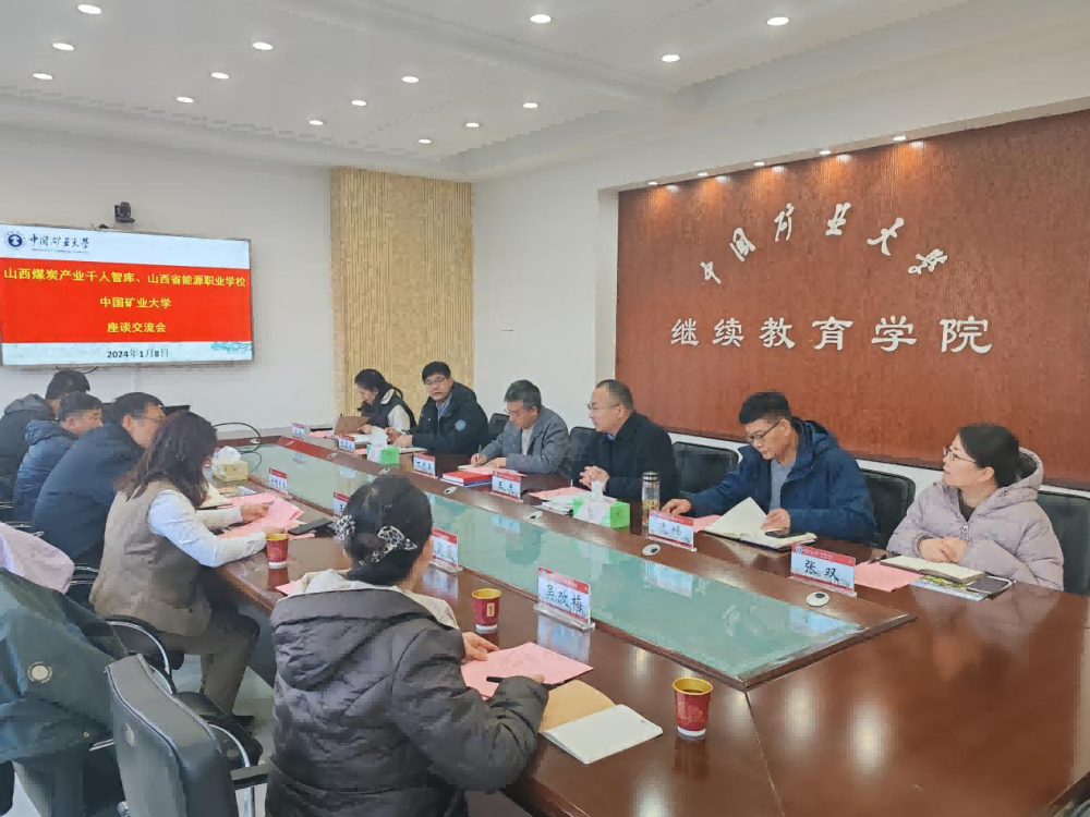 1月8日,山西省煤炭學會煤炭產(chǎn)業(yè)千人智庫辦公室主任王飛帶隊,山西省能源職業(yè)學校(山西省能源職工教育中心)黨委委員、副校長皇甫勇兵等一行6人調研組,赴中國礦業(yè)大學繼續(xù)教育學院、應急管理學院調研學習并開展交流座談。此次活動是自2023年山西煤炭產(chǎn)業(yè)千人智庫培訓基地成立以來首次赴高校調研交流,圍繞職業(yè)教育特色打造、礦山智能采礦人才培養(yǎng)、安全與應急相關專業(yè)的學科建設、人才培養(yǎng)課程設置、職普融合、智能礦山國家級重點項目等主題進行交流學習,對基地建設發(fā)展具有重要意義。
