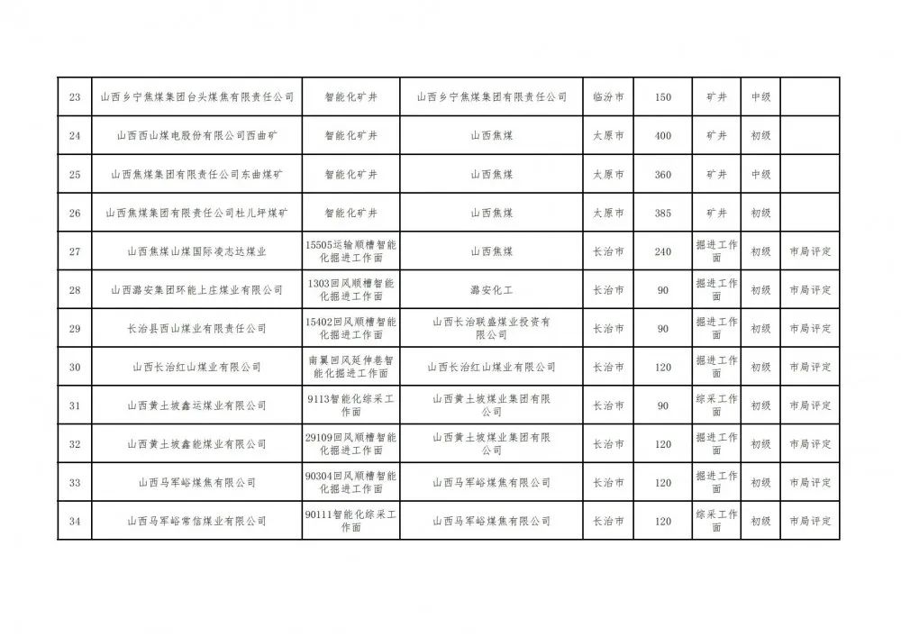 關(guān)于山西大平煤業(yè)有限公司等50個智能化建設(shè)項(xiàng)目評定結(jié)果的公告
