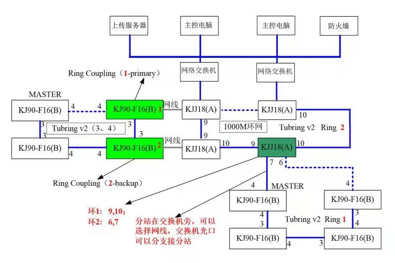 摘 要:為了解決我礦安全監(jiān)控系統(tǒng)采用RS485單鏈路串聯(lián)傳輸容易出現(xiàn)數(shù)據(jù)傳輸中斷、傳輸速度慢等問題,我礦根據(jù)國家煤礦安監(jiān)局《煤礦安全監(jiān)控系統(tǒng)升級改造技術(shù)方案》要求對礦井安全監(jiān)控系統(tǒng)環(huán)網(wǎng)傳輸方式進行了技術(shù)改進,采用了雙鏈路冗余環(huán)網(wǎng)組網(wǎng)的傳輸模式。極大地提高了網(wǎng)絡穩(wěn)定性,減少了因安全監(jiān)控系統(tǒng)傳輸故障而引發(fā)的安全事故,保障了煤礦安全生產(chǎn)。 1.引言 針對山西臨縣華燁煤業(yè)有限公司安全監(jiān)控系統(tǒng)的現(xiàn)狀和需求,根據(jù)臨縣華燁煤業(yè)安全監(jiān)控系統(tǒng)技術(shù)特點,本文提出了山西臨縣華燁煤業(yè)有限公司安全監(jiān)控系統(tǒng)技術(shù)改造方案設(shè)計,針對改造前山西臨縣華燁煤業(yè)有限公司面臨問題:安全監(jiān)控系統(tǒng)傳輸光纜與礦井巷道范圍內(nèi)所控制的安全監(jiān)控分站進行單鏈路串聯(lián)傳輸,這種單鏈路串聯(lián)傳輸?shù)姆绞?,如果有一點傳輸線路故障或者增加刪除監(jiān)控分站,就會導致整個數(shù)據(jù)傳輸鏈路中斷,保障整個線路不出現(xiàn)故障點是非常困難的,導致這種單線串聯(lián)方式可靠性低,系統(tǒng)不穩(wěn)定,臨縣華燁煤業(yè)安全監(jiān)控系統(tǒng)技術(shù)改造方案設(shè)計依據(jù)《煤礦安全監(jiān)控系統(tǒng)通用技術(shù)要求(AQ6201-2019)》和《煤礦安全監(jiān)控系統(tǒng)及檢測儀器使用管理規(guī)范(AQ1029-2019)》要求,極大地提高了安全監(jiān)控系統(tǒng)數(shù)據(jù)傳輸?shù)目煽啃浴?/span> 2.技術(shù)改造背景 山西臨縣華燁煤業(yè)有限公司位于臨縣林家坪鎮(zhèn)滴水局村南,北距臨縣縣城57km,行政區(qū)劃屬臨縣林家坪鎮(zhèn)管轄。礦區(qū)臨近有離(石)—磧(口)公路通過,礦區(qū)距離石市區(qū)30km,于離石市區(qū)附近與臨(縣)—太(原)干線公路連接,至離石市西南3km交口可與孝柳鐵路交接。礦井井田南北寬3.75km,東西長2.38km,井田面積6.971Km2。煤礦產(chǎn)能:120萬噸/年;瓦斯等級:高瓦斯。 華燁煤礦目前在用的安全監(jiān)控系統(tǒng)為中煤科工集團重慶研究院有限公司生產(chǎn)的KJ90NB型安全監(jiān)控系統(tǒng)。該系統(tǒng)于2002年在華燁煤業(yè)安裝使用,系統(tǒng)型號為KJ90NA型,KJ90NB型安全監(jiān)控系統(tǒng)2013年進行了第一次升級改造,第一次升級改造后的安全監(jiān)控系統(tǒng)符合當時的老版的《煤礦安全監(jiān)控系統(tǒng)通用技術(shù)要求(AQ6201-2006)》和《煤礦安全監(jiān)控系統(tǒng)及檢測儀器使用管理規(guī)范(AQ1029-2007)》要求。系統(tǒng)自2018升級以后,全部設(shè)備防護等級已達到IP65,并具備數(shù)字化傳輸要求,并具有融合人員定位系統(tǒng)與廣播系統(tǒng)的接口,但目前分站之間串聯(lián)傳輸,任何一點故障都會導致系統(tǒng)癱瘓,系統(tǒng)穩(wěn)定性很差。目前系統(tǒng)數(shù)據(jù)采用通訊線纜傳輸不符合《煤礦安全監(jiān)控系統(tǒng)升級改造技術(shù)方案(煤安監(jiān)函[2016]5號)》[1]通知要求的主干傳輸采用環(huán)網(wǎng)傳輸?shù)囊蟆?/span> 山西臨縣華燁煤業(yè)有限公司根據(jù)國家能源局、國家礦山安全監(jiān)察局有關(guān)智能化煤礦建設(shè)的有關(guān)要求[2,4],中華人民共和國應急管理部4號令《煤礦重大事故隱患判定標準》[5]及《煤礦安全監(jiān)控系統(tǒng)升級改造技術(shù)方案》的通知煤安監(jiān)函〔2016〕5號文的要求,在2021年對礦井安全監(jiān)控系統(tǒng)進行了全面環(huán)網(wǎng)傳輸方式技術(shù)改進。 在改造前期,延用了傳統(tǒng)安全監(jiān)控系統(tǒng)的環(huán)網(wǎng)設(shè)備進行數(shù)據(jù)傳輸。井下環(huán)網(wǎng)交換機到安全監(jiān)控分站之間采用RS485傳輸光纜傳輸方式,一條光纜連接多臺分站。傳輸光纜一旦發(fā)生故障或者增加刪除監(jiān)控分站,將影響多臺安全監(jiān)控分站數(shù)據(jù)傳輸。 我礦在井下三個變電所設(shè)置了三臺重慶煤科院生產(chǎn)的KJJ103型環(huán)網(wǎng)交換機,三臺環(huán)網(wǎng)交換機互相通過光纜連接,再由中央變電所環(huán)網(wǎng)交換機支出兩條光纜從不同井口傳輸至地面中心站,從而形成井下安全監(jiān)控環(huán)網(wǎng)。井下環(huán)網(wǎng)交換機通過RS485轉(zhuǎn)換模塊,利用傳輸光纜與區(qū)域內(nèi)每臺安全監(jiān)控分站進行單鏈路串聯(lián)傳輸。在實際使用中發(fā)現(xiàn),這種傳輸方式存在可靠性低的弊端,雖然井下三臺環(huán)網(wǎng)交換機中可以實現(xiàn)某一交換機斷開不影響實際數(shù)據(jù)傳輸,但是采用RS485單鏈路串聯(lián)傳輸?shù)陌踩O(jiān)控分站,只要其中一段傳輸光纜出現(xiàn)或者增加刪除監(jiān)控分站,那么故障光纜后面所接的全部安全監(jiān)控分站就處于中斷傳輸狀態(tài)。這就造成了各類傳感器數(shù)據(jù)不能及時傳輸?shù)降孛嬷行恼?,不僅影響范圍大、還不能及時掌握井下各類傳感器的實時數(shù)據(jù),從而不能保證煤礦的安全生產(chǎn)。在這種狀況下,就必須解決這單一故障而影響多臺瓦斯監(jiān)控分站正常傳輸?shù)膯栴}。在確保數(shù)據(jù)傳輸穩(wěn)定的前提下,我們打破常規(guī),對井下安全監(jiān)控系統(tǒng)環(huán)網(wǎ