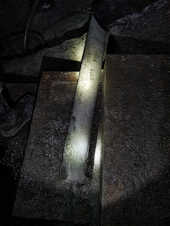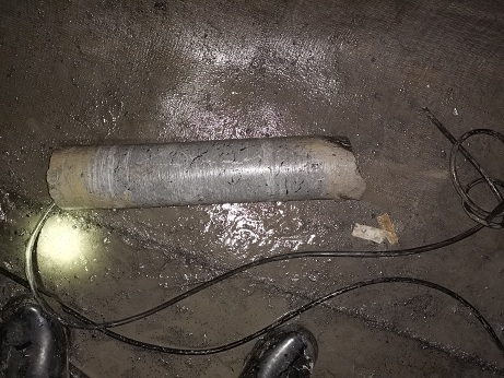 圖1 地應(yīng)力測(cè)孔布置示意圖 2、測(cè)試步驟根據(jù)空芯包體應(yīng)變計(jì)解除的原理,地應(yīng)力現(xiàn)場(chǎng)具體測(cè)量步驟、所需儀器及注意事項(xiàng)如下: (1)地質(zhì)鉆打孔 地點(diǎn)選取。選取整體巖性較好區(qū)域的巷道,安設(shè)測(cè)點(diǎn)。測(cè)點(diǎn)巷道內(nèi)應(yīng)水電方便,地質(zhì)鉆工作時(shí)應(yīng)不影響巷道運(yùn)輸。 打孔取芯。使用地質(zhì)鉆機(jī),如圖2所示,配直徑為42mm的接長(zhǎng)鉆桿,并運(yùn)用特制的取芯套筒(長(zhǎng)度為1m,直徑為127mm)及平鉆頭(直徑為127mm),如圖2所示。在所測(cè)巷道巖壁上打直徑為127mm的鉆孔,至巷道跨度的2~3倍深處,以保證應(yīng)變計(jì)安裝位置位于原巖應(yīng)力區(qū)。當(dāng)鉆孔至預(yù)定長(zhǎng)度時(shí),取出巖芯,并編號(hào)套袋保護(hù)巖芯,最終成孔如圖3所示,取得的巖芯如圖5所示。