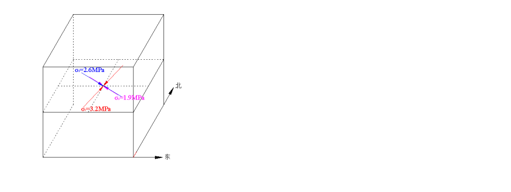 圖13 測(cè)試區(qū)域三個(gè)主應(yīng)力空間分布示意圖